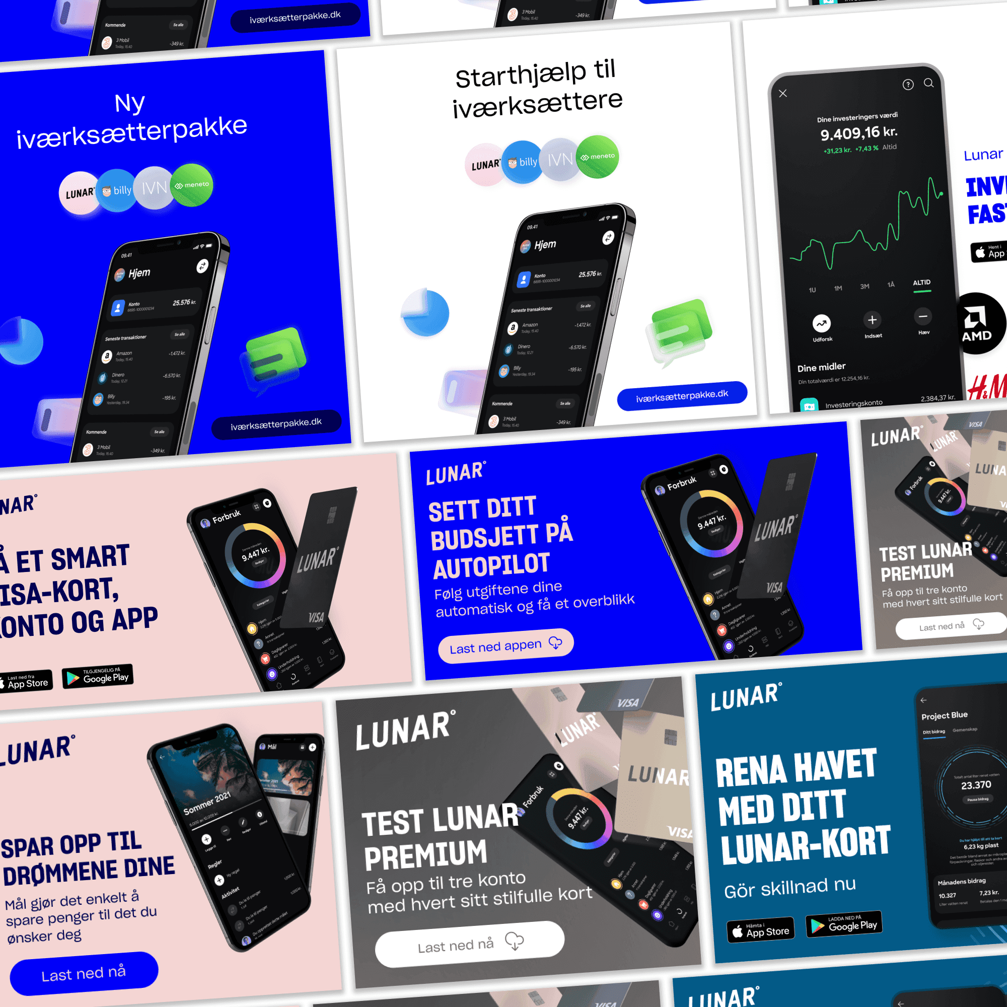 During my internship at Lunar, I was tasked with creating a series of still images to promote the Lunar entrepreneur card. The objective was to showcase the card’s unique features and encourage both small and large businesses to choose Lunar as their preferred provider of business credit cards.